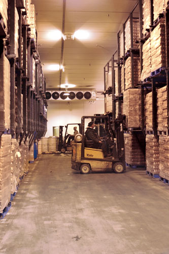 Figuur 1: Twee opslaghallen van ongeveer gelijke grootte en met eenzelfde vuurlast. In het ene geval vindt de opslag plaats bij omgevingstemperatuur (links: +20 oC), in het andere geval gaat het om een vriesveem (rechts: -20 oC).