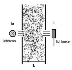 Er is dus een maat nodig voor de mate van zichtbelemmering, in de vorm van een optische rookdichtheid. De uitdoving van de lichtsterkte ten gevolge van het rook/lucht-mengsel is een maat hiervoor. Dit wordt wel de light extinction coefficient genoemd, zie figuur 1.
